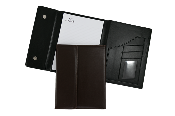 فولدر چرمی مگنت دار طرح چرم، دارای جای کارت ، جای خودکار و جای یادداشت، هدایای تبلیغاتی