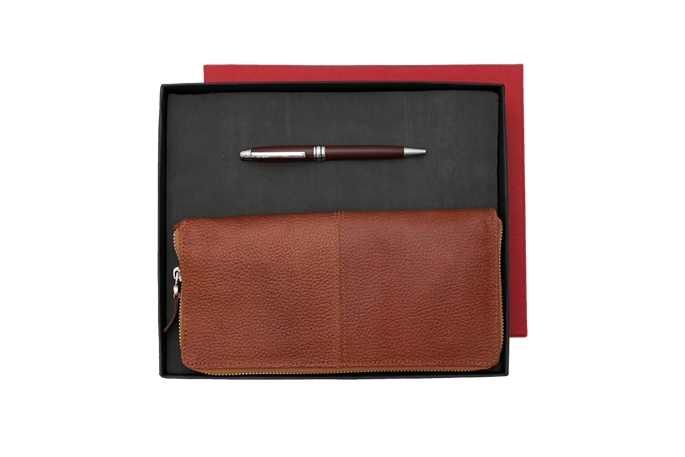 ست چرمی طبیعی شامل کیف پاسپورتی ، خودکار فلزی، چرم طبیعی گاوی، هدایای تبلیغاتی